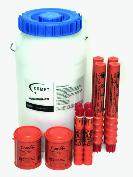 Consists of:- 4 Red Handflares (3.05.0091)- 4 Parachute Rockets (3.05.0015)- 2 Bouyant Smoke Signals (3.05.0069)- 1 Watertight Contatiner