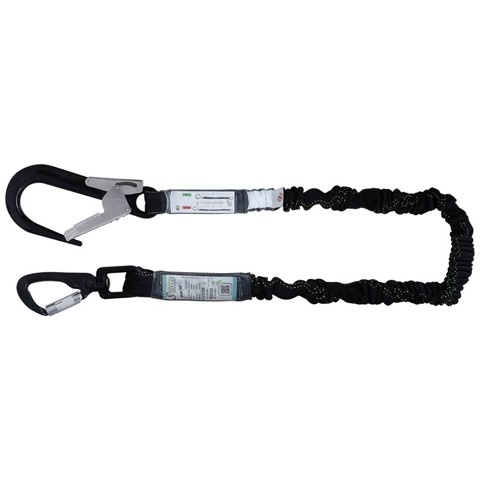 Energy absorber Kratos Gravity-S Expandable - 2mtrExpanded length : 2 mRelaxed length : 1.40 mWeight: 1.01 kgMax. user weight: 140 kgConnectors : 1 aluminium karabiner at one end and 1 aluminium scaffold hook at the other endConforms to : EN355:2002- Energy absorber in webbing with central weaving and with progressive deformation which reduces the impact of the fall less than 6 kN- Protective 45 mm wide polyester expandable webbing lanyard- Loops protected by an abrasion resistant tubular webbingFall indicator label: Before each use, inspect your energy absorbing lanyard.If the "NOT OK" sign is visible on the label, this means your equipment has arrested a fall and should not be reused.Please replace it by a compliant one.