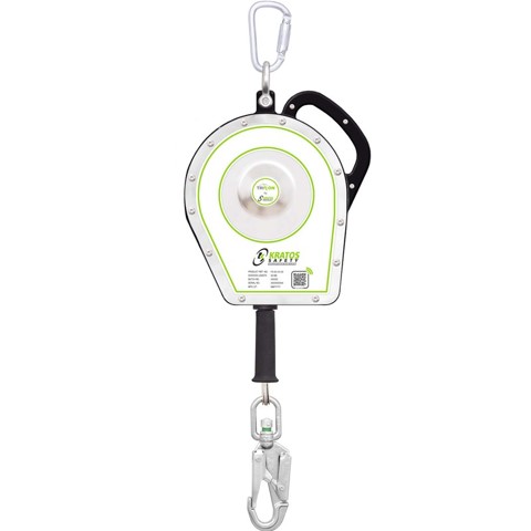 Fall arrest Kratos Triton - retractable - ATEX 1 - 20mtr- Casing made up of high impact strength Polymer with Stainless steel cover, integrated carrying handle.- The design of the internal mechanism in 2 different parts allows a perfect impermeability (meets IP68 level of IEC 60529) of the blocking-braking system. As for the pulley & wire rope part, it allows to replace the wire rope quickly & easily with minimum tools.- Comes with Stainless Steel Wire Rope of diam 4.5 mm having:==> a stainless steel connector with load indicator==> a gripping handle.- Internal braking mechanism to reduce the fall arrest force to less than 6 kN.- 180°-pivoting anchorage loop & FA 50 106 22 stainless steel connector at anchorage end.- Weight: 11.83 kg.- Delivered with a cord (FA 20 904 10) for guiding the winding back of the wire rope.- HS code: 84798997Compliance: EN 360:2002, IEC 60529 (IP68), ATEX Zone 1.Minimum breaking strength > 12 kN.Approved for a user with a max. weight of 140 kg in vertical use only.