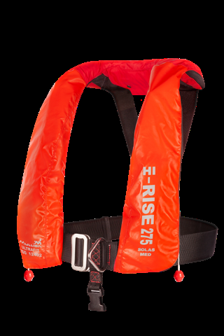 KEY FEATURES - Durable waterproof fabric - Durable wipe clean PVC reinforcement - Double shoulder straps for comfort and reduction of weight to the back neck. - Zip fastening cover - Stainless steel interlocking belt buckles - Adjustable waist belt - Detachable crutch strap - Marine grade stainless steel D-ring in front Bladder-Double chamber-Oral inflation tube on back chamber and Over pressure tube + relief valve on front chamber for manual inflation and deflation and also to relieve any excess pressure if both chambers are fired simultaneously-SOLAS approved retro-reflective tape on bladder-Red recovery grab strap on bladder marked “LIFT”-2 x 60g CO2 gas cylinders-Automatic water-activated SOLAS S.O.S. light-2 x Inflation systems-Marine grade whistle-Buddy line-The sprayhood gives optimum protection to face and mouth by protecting airways from water ingress and spray. Face window panel with breath holes to prevent asphyxiation. Reflective tape for visibility for in-water locationAVAILABLE SIZES - Universal CERTIFIED-SOLAS-EN ISO 12401 : 2009-RED ENSIGN-EN ISO 12402-2 : 2020 - EN ISO 12402-6 : 2020 for inflatable lifejackets performance level 275 COLOUR - RS0 Red