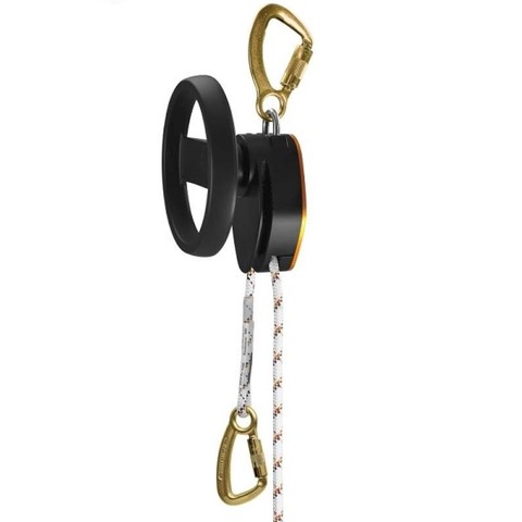 The MILAN 2.0 HUB is additionally equipped with a lifting function. This enables an accident victim to be lifted across a short distance, in order to release the victim’s lanyards, after which the victim can then be safely lowered by rope (where the new housing design improves handling for the accompanying rescue). The SUPER STATIC 9.0 static rope fulfils this requirement despite its diameter of only 9 mm. The packing size of the MILAN 2.0 HUB is small compared to ropes which are 10.5 mm in diameter. This is a major advantage, in particular, at great heights.